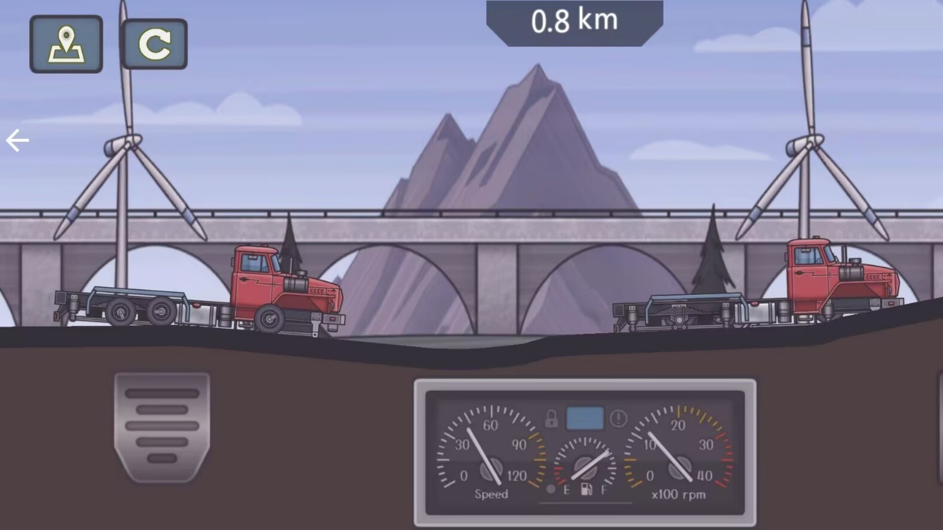 进入游戏后,玩家需要使用左手控制刹车右手控制油门,和对手司机完成这场2.2KM的竞速挑战!先抵达终点即可获胜!