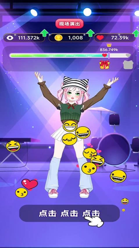 4、在现场演出的时候,你需不断点击屏幕,这样即可出现更多的点赞表情包。