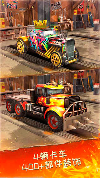 1、提供多款性能各异的酷炫卡车,每辆都拥有独特的驾驶手感与外观设定。