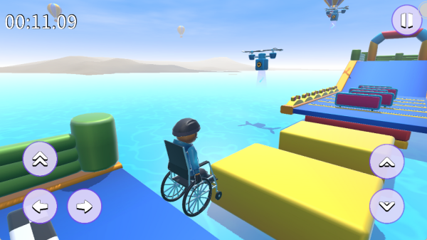 2、玩家要在有限时间内到达终点,体验丰富的跑酷玩法,操控轮椅穿越所有复杂的区域。