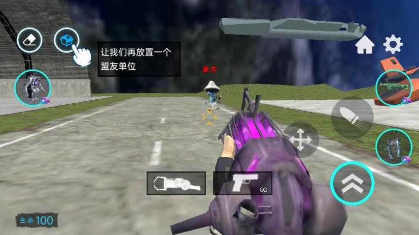 4、将角色添加到沙盒世界就可以切换一个发令枪开始战斗,友方和敌方可以自动攻击