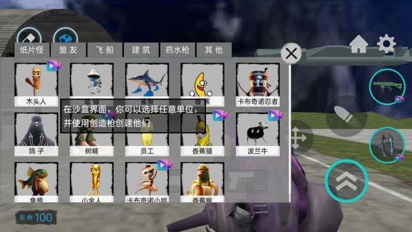 3、在沙盒界面,你可以选择一个单位创建,例如添加一个木头人