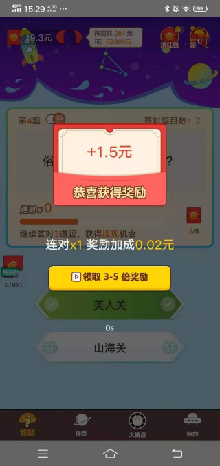 4.不同的关卡中都会有不同的答案,如果你回答正确,你可以获得红包;