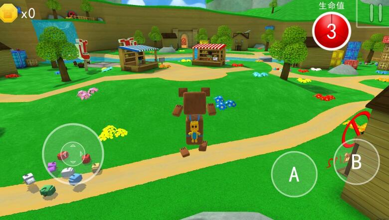 1、进入游戏后,主要通过点击或滑动屏幕左侧的虚拟摇杆来控制熊的移动方向。