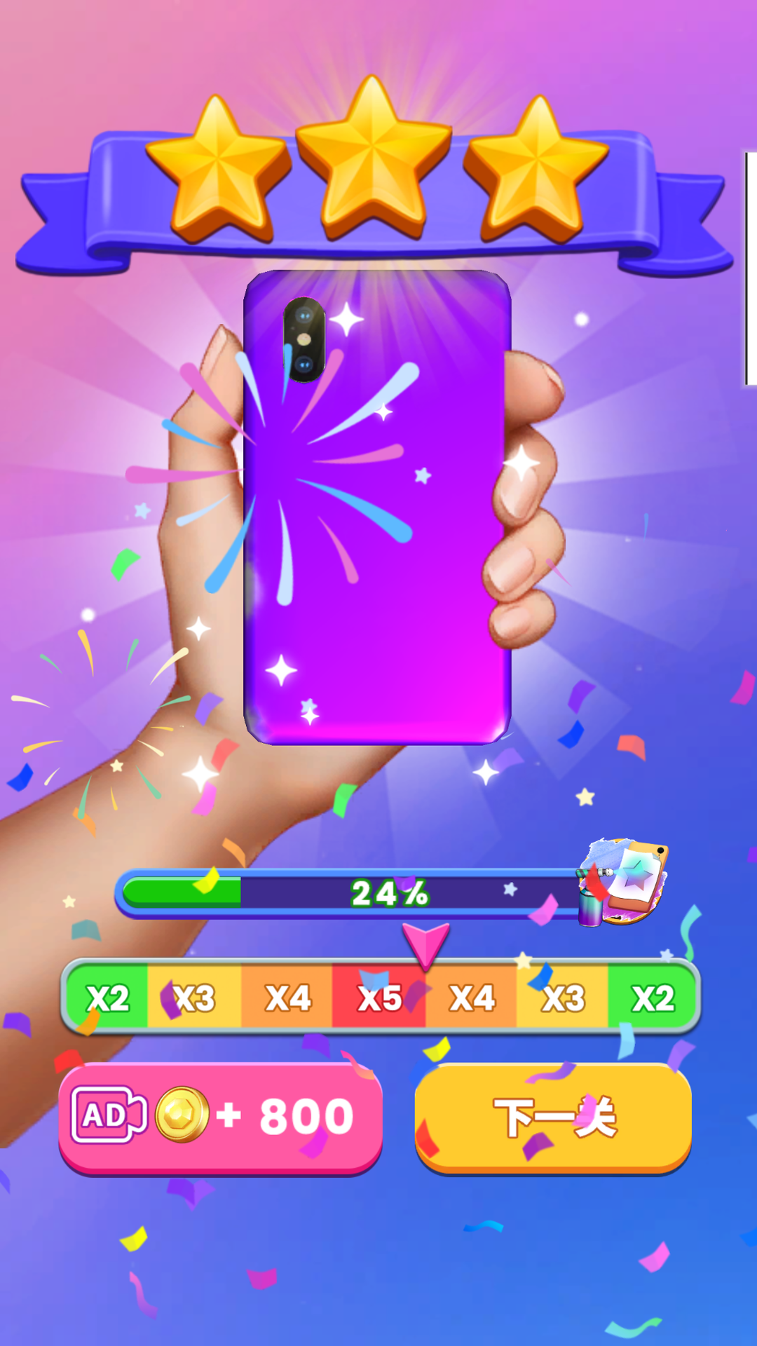 3、随着游戏进行,你可以使用赚取的金币,解锁更多不同风格的手机壳“桌布皮肤”。