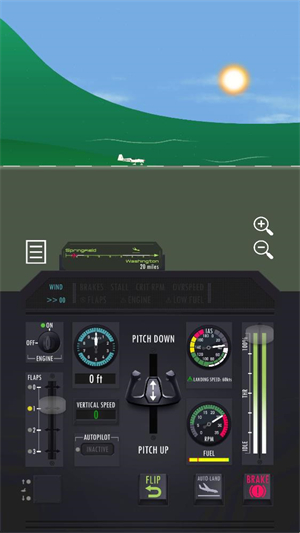 7、当飞行一段时间后右下方的AUTO-LAND亮起时,点击它就可以让飞机自动降落,降落后就可以通关。