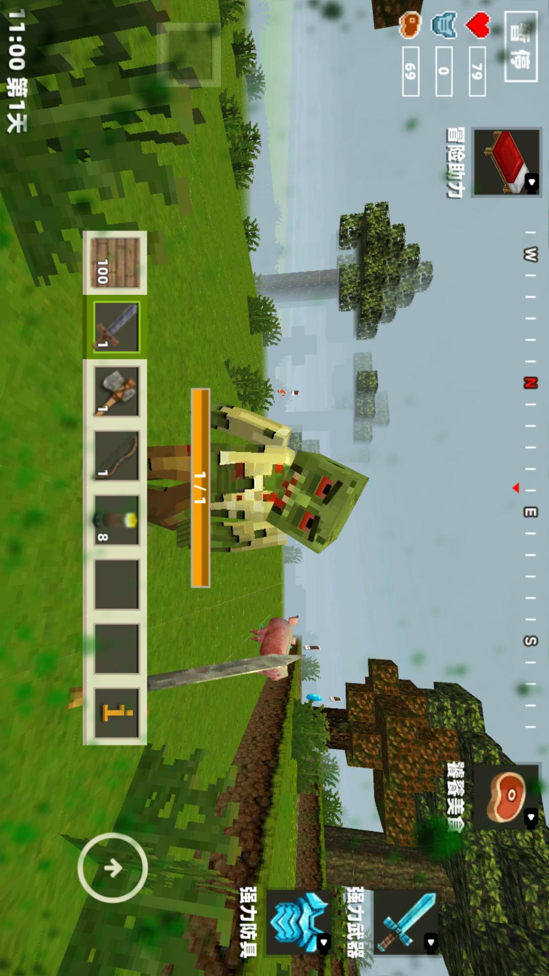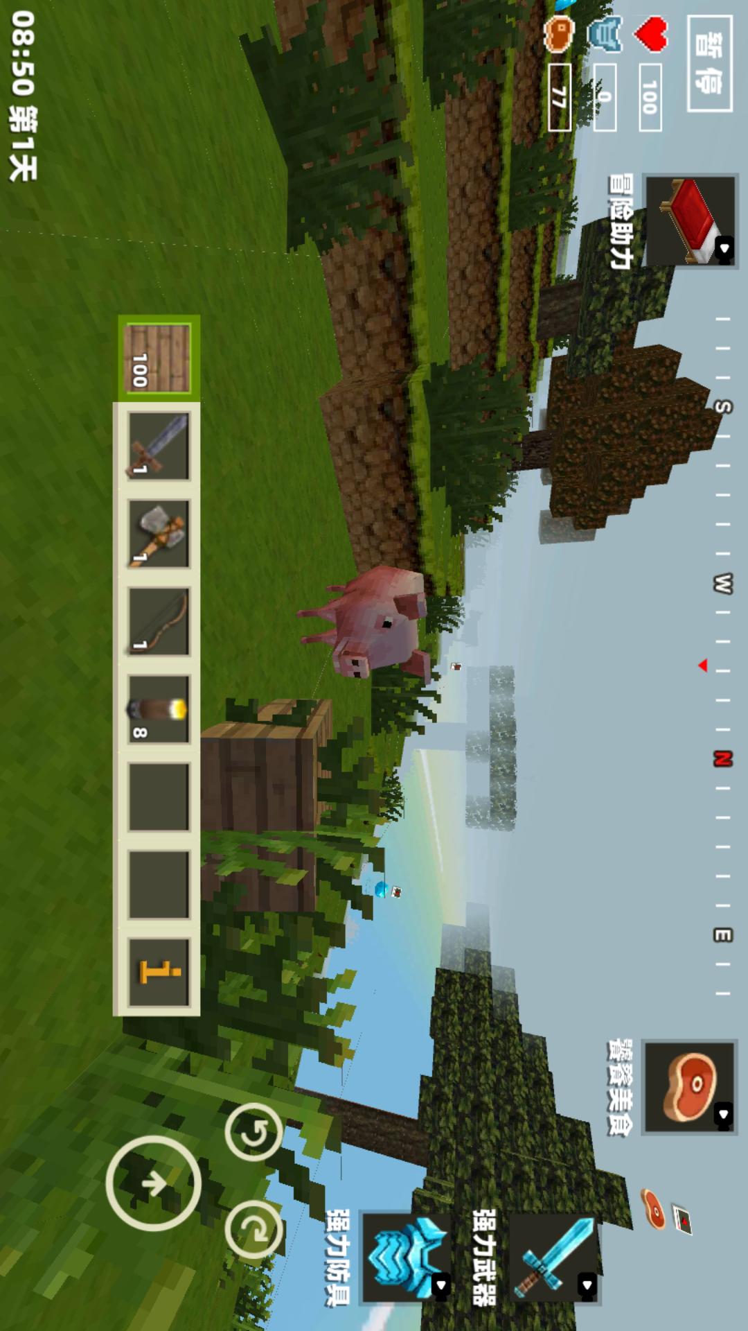 3、融入了生存元素,你需要收集木头、石头等资源来制作工具,甚至要应付夜晚出现的危险。