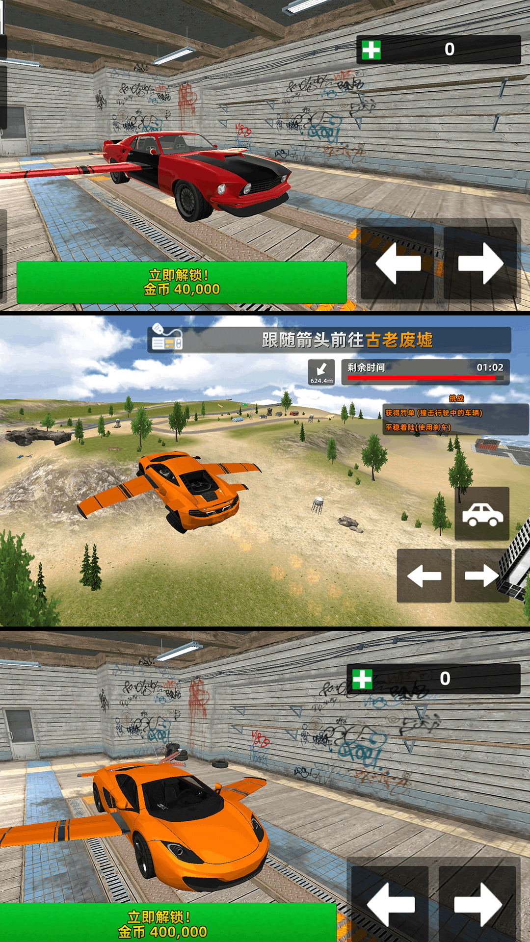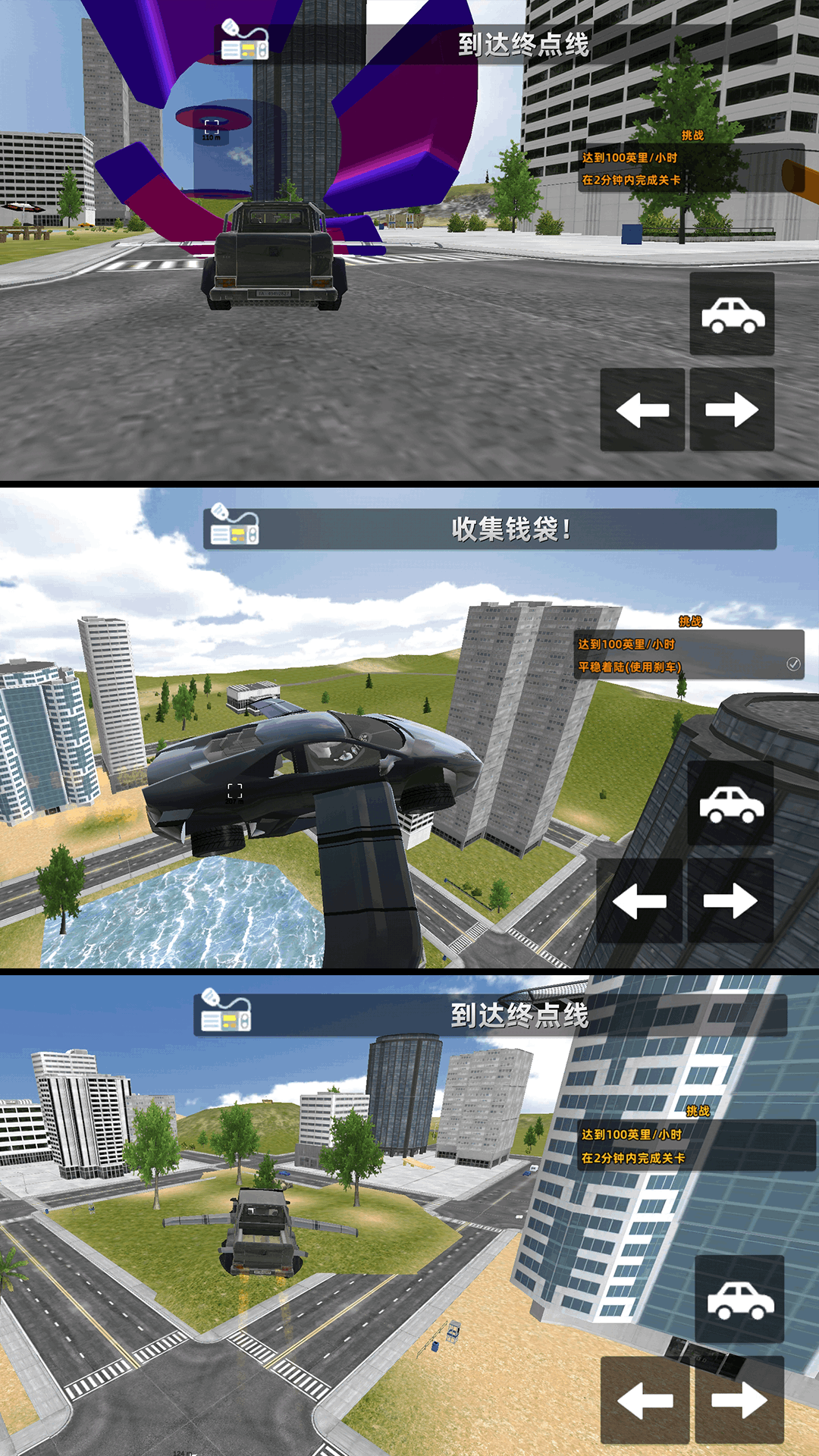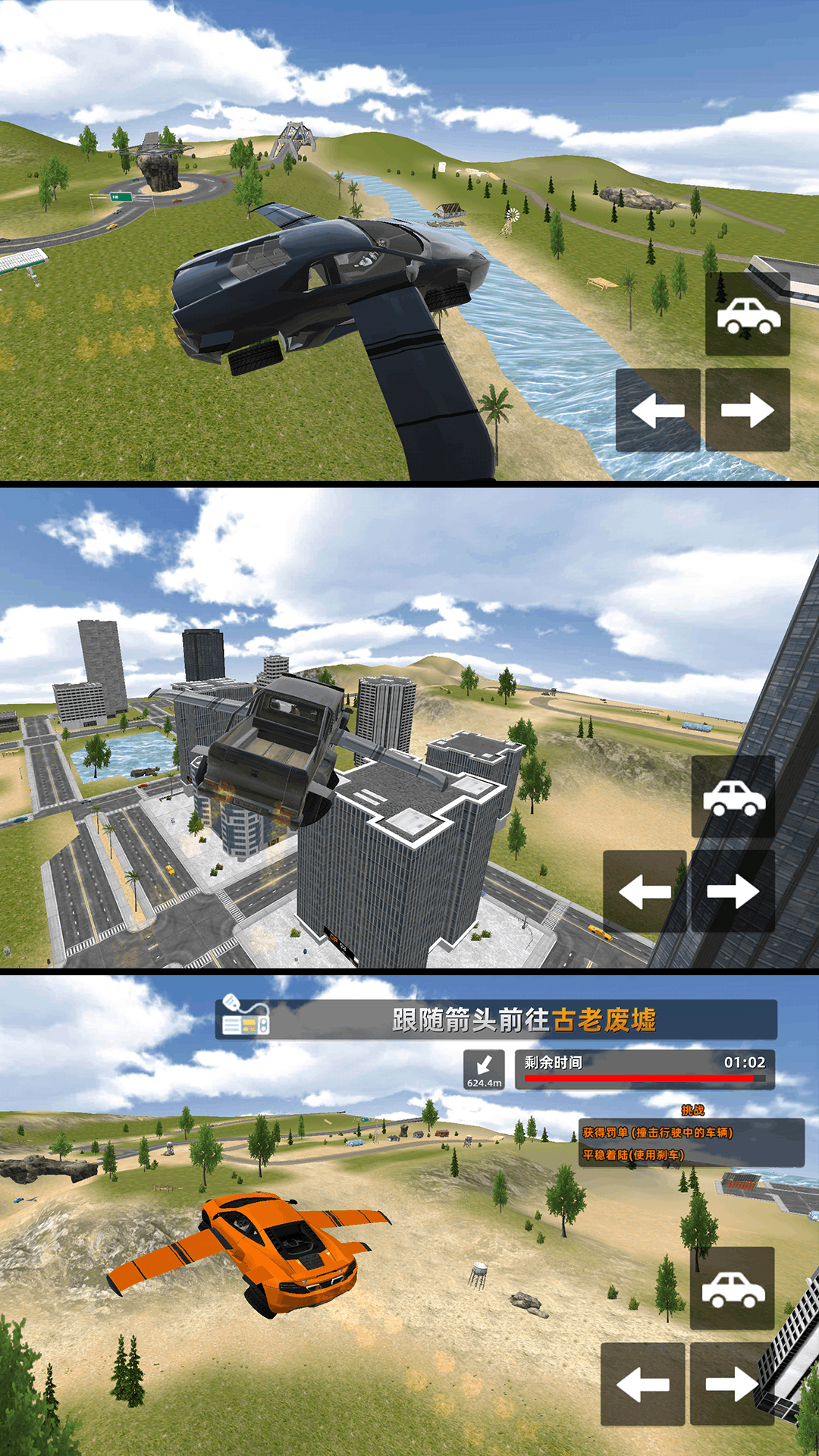 2、在驾驶过程中可以按下飞行按钮,让汽车获得飞行能力,在高空中自由驾驶汽车。