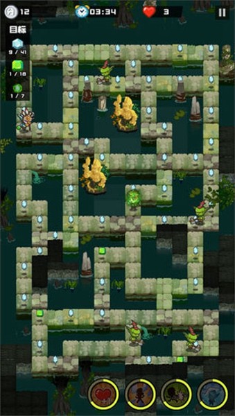 设定了三种不同的角色,同时每一个角色都有其独特的技能,玩家还需要采用策略,这样才能顺利的消灭哥布林,并且拿走他们的宝藏,玩起来还是相当不错的一款游戏。