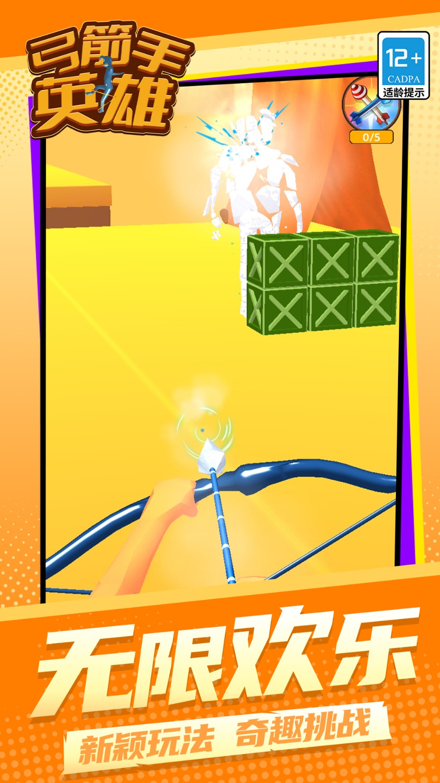 弓箭手英雄是一款非常好玩的射击游戏,在游戏中玩家将成为一名弓箭手,面对场景中的各种敌人,玩家要找到合适的射箭角度,精准命中每名敌人,清除道路中的所有障碍物,快速到达终点就能获得奖励,快速升级弓箭获得更好的战斗体验。