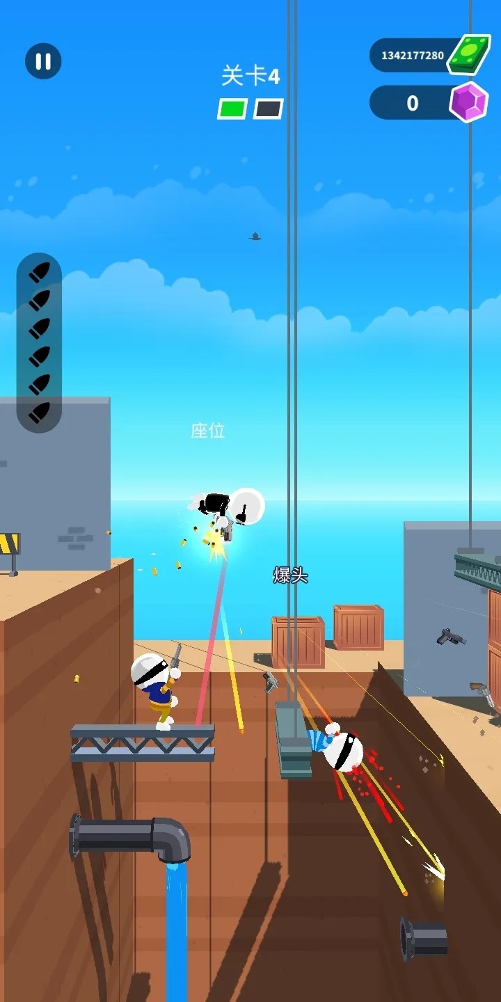 2、当红线对准敌人的时候点击屏幕人物将会进行射击