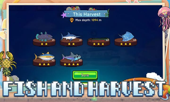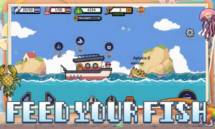 3、游戏还提供了社交互动功能,玩家可以将刮好鳞的鱼喂给饥饿的顾客或海龟,以获得金币。