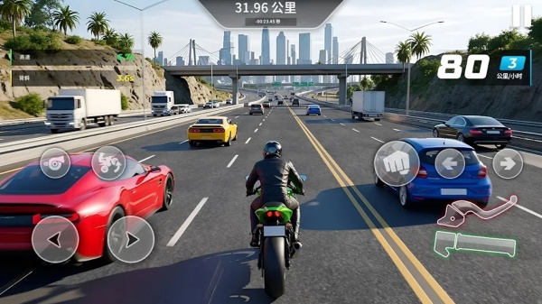 1、在拥堵的城市道路中穿梭前行,全程追求更快通关时间,在刺激对抗中感受竞速的核心乐趣。