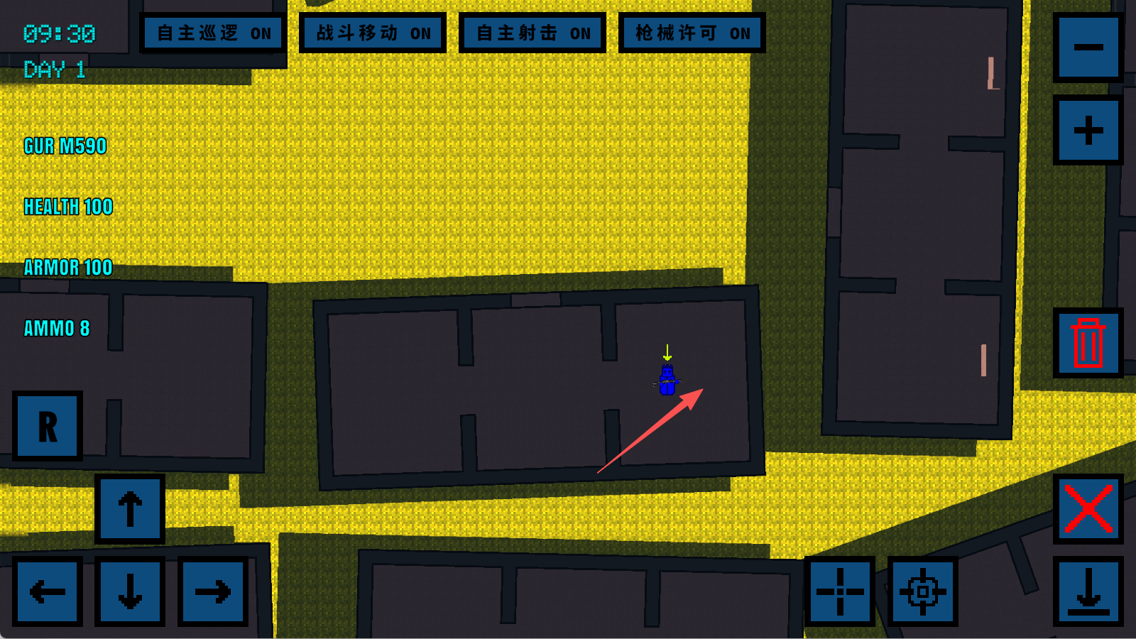 1、用方向键控制视角移动,探索地图或寻找目标区域,为兵种部署与阵地转移做好准备。