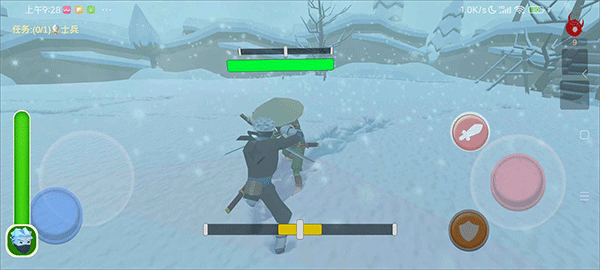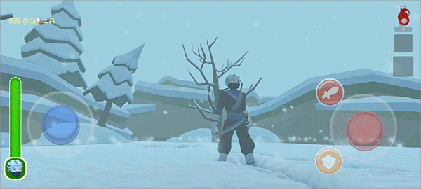 1、进入游戏后,蓝色轮盘控制忍者的移动,红色轮盘切换视角,红色剑按钮为攻击,黄色盾牌按钮为防御。