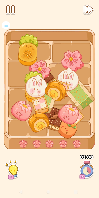 2.第一个关卡是便当盒整理挑战。玩家需要将食物放置在便当盒对应的位置才能闯关。