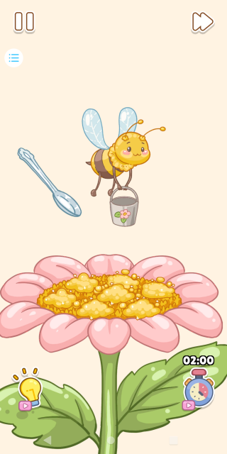 4.如下图所示,在本关卡中玩家需要帮助小蜜蜂收集花蜜。点击汤匙来将花蜜盛到小蜜蜂中的桶中吧。
