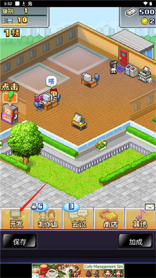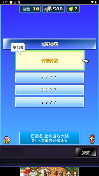 3、对话结束后,玩家需要开始计划开发游戏,我们点击开发;