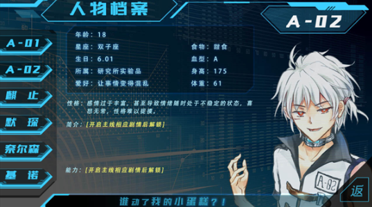 【A-01】研究所“最高级实验品”,三无冰山暗含隐藏属性。