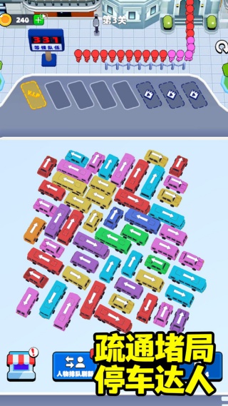 神级倒车是一款停车场调度的休闲益智游戏,极具策略性的脑力挑战体验。玩家面对挤满车辆的复杂停车场,需通过点击控制车辆沿车头方向直线移动,利用有限空档调整移动顺序与时机,为深处的目标车辆开辟通畅出口,让所有车辆有序驶出,感受逻辑破解带来的满满满足感。