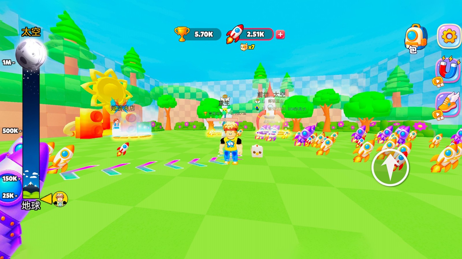 1.操控主角移动并收集场景中的火箭,火箭为推进提供能量,收集数量直接影响冲刺速度。