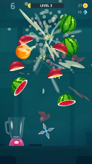 3、关卡难度呈递进式设计,后续关卡中水果飞出速度加快、频率增高,不断考验玩家的反应能力与操作精准度。