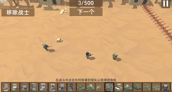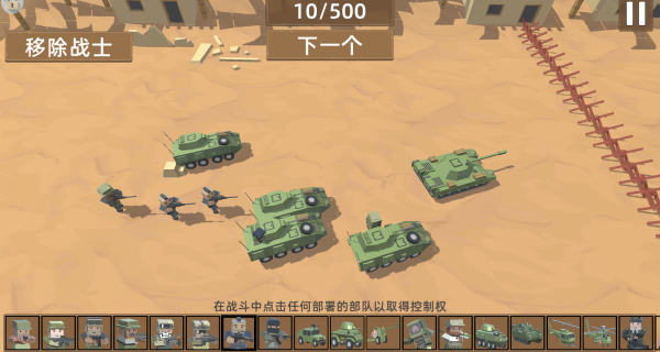 2、以沙盒模式为例,你可以在地图上任意位置自由部署己方的部队、士兵和战车。