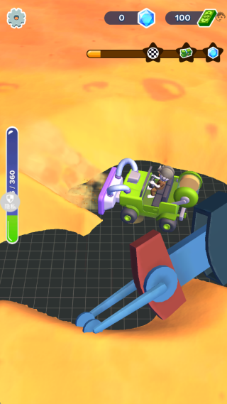 1、进入游戏后操控吸沙车在沙漠中灵活移动,对准沙丘启动吸尘器,收集大量沙子积累资源。