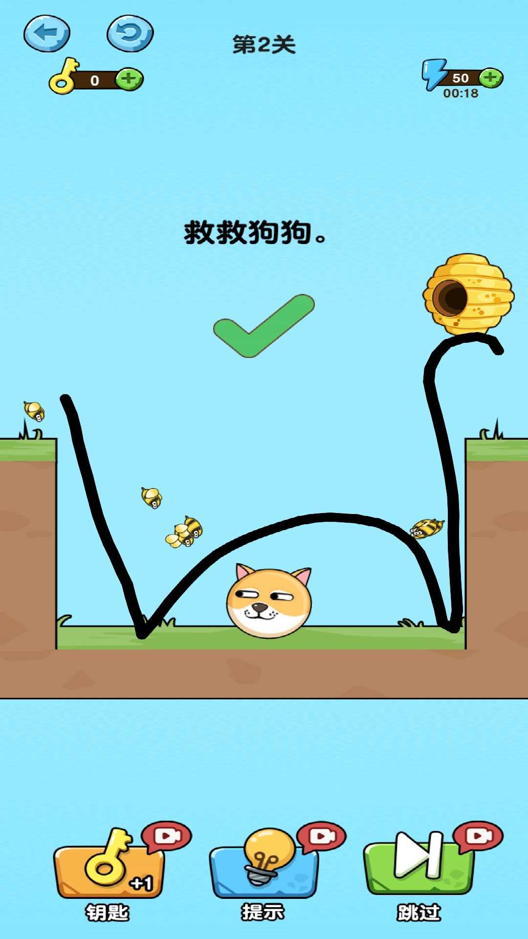 4、当玩家成功画线保护狗狗时,场景会给出即时反馈,如蜜蜂被屏障阻挡、狗狗安全逃生等,增强成就感;