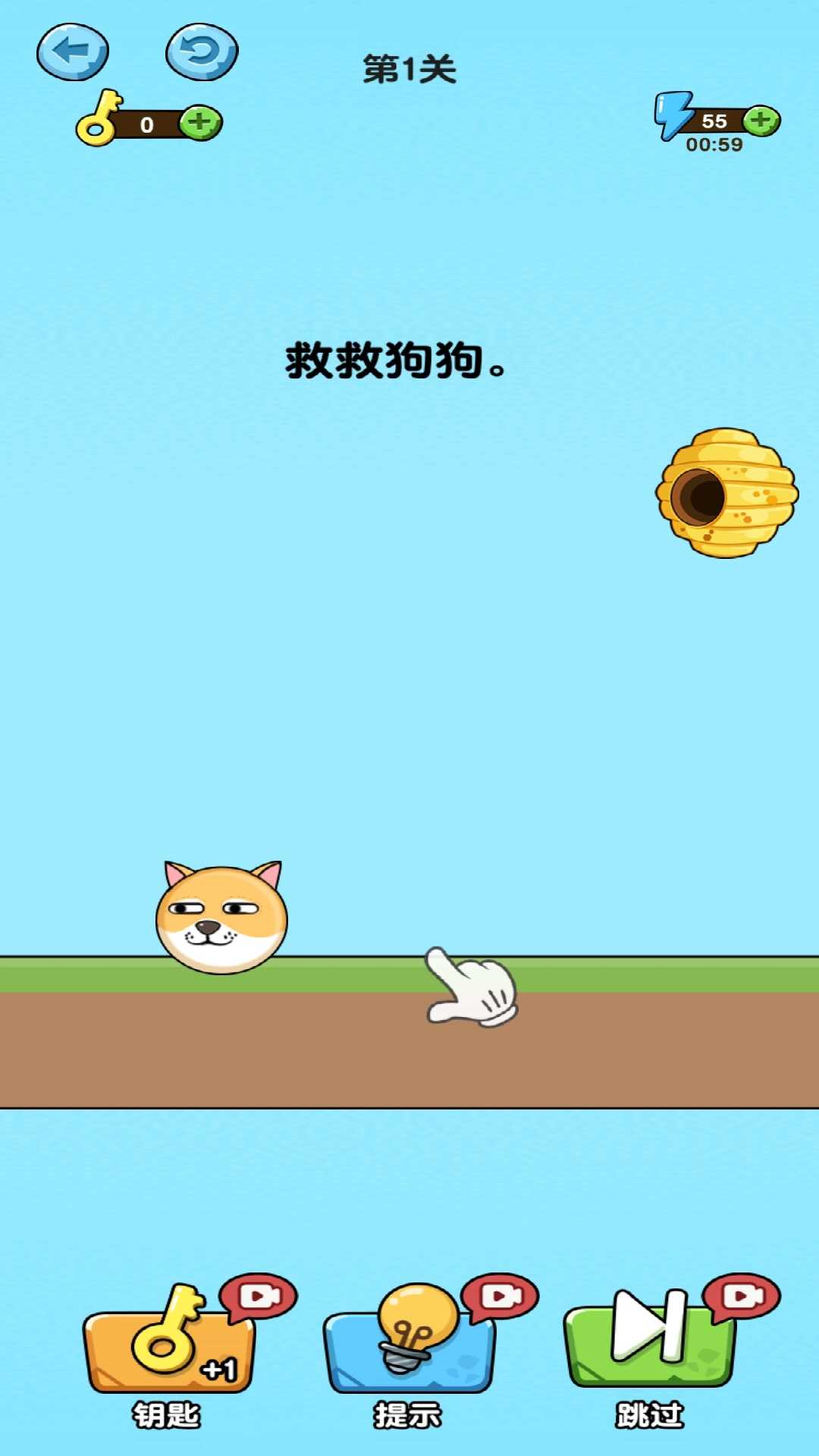 1、进入游戏,可以看到呆萌的狗狗,等着你去拯救;