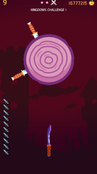 2.游戏操作十分简单,在投掷飞刀时,只需确保不碰到已有的飞刀就行,同时留意左下角显示的需要投掷出的飞刀数量。
