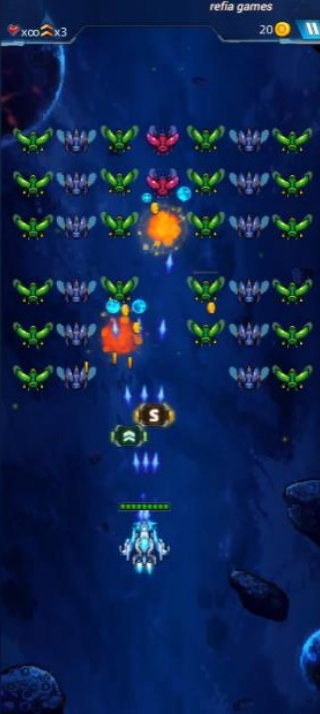 星际战线无尽射击一款街机风格的无尽射击游戏,玩家将驾驶战斗机在浩瀚的宇宙中展开激烈战斗,游戏采用经典的横版射击玩法,玩家需要灵活操控飞机,躲避敌人的攻击,同时发射强力武器消灭来袭的敌舰,丰富多样的敌人和强大的Boss让每一局都充满挑战,玩家可以通过收集道具和升级装备来提升战斗力。