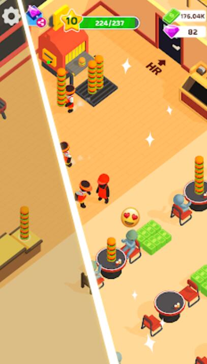 4.没有厨师能独自成长。通过智能管理招聘、培训员工并提高团队绩效。一个强大的团队将帮助您处理高峰期,保持桌面清洁,并提供从芯片和饮料到高品质汉堡包的一切。有了良好的策略,您的快餐业务将比以往任何时候都更快地发展。
