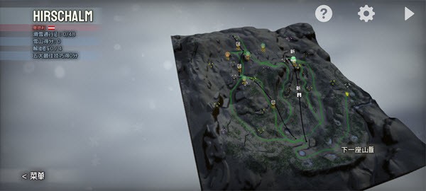 4、点击右上角的地图按钮以查看当前的山峰以及地形。