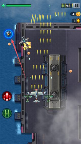 1、通过简单的触屏操控战机移动与射击,集中火力摧毁所有来袭敌机与地面战略目标。
