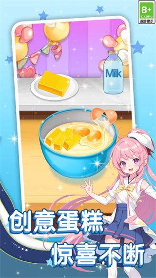 1. 玩家在游戏中将扮演一名蛋糕师,在虚拟的厨房中完成从准备材料到最终装饰的各类蛋糕订单。