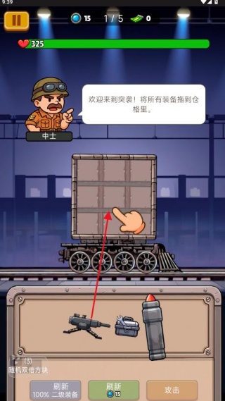 1、进入改装界面后,按照提示将下方的武器、装备拖入车厢的空位中,完成初始装备的配置。