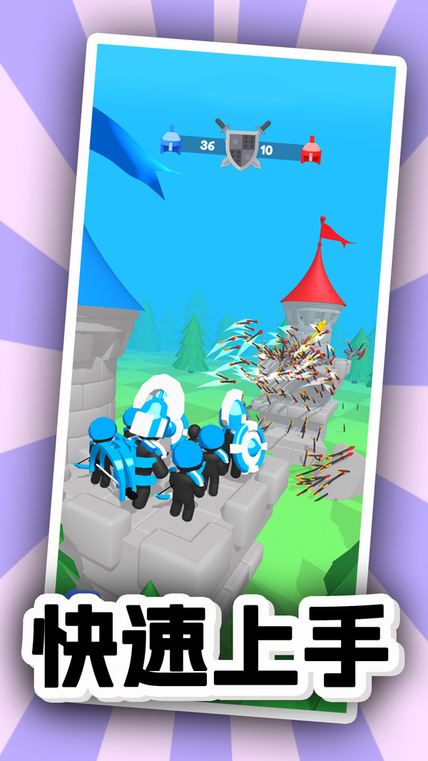 2、节奏紧张刺激,完美融合了固守城墙的紧迫感和集结反击、万箭齐发的爽快感,让玩家体验一场完整的、充满戏剧性的城堡攻防战。
