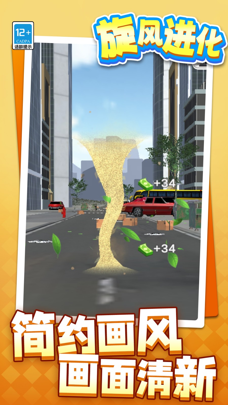 旋风进化是一款休闲养成挂机类游戏。玩家的任务是培养消旋风,通过升级旋风的各项属性来提升其威力,让你成为破坏力更强的龙卷风将城市中的万物给卷起来!挂机玩法无需玩家过多的操作,只需要积累资源然后合理升级即可,非常适合用来打发时间玩耍。