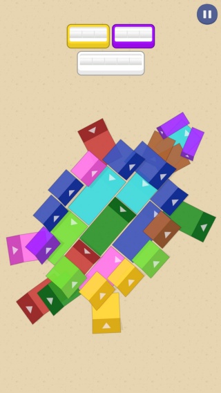 2、先标记出关卡目标对应的胶带颜色如黄色、紫色,优先处理这些目标颜色的胶带,同时观察其与其他胶带的重叠顺序。