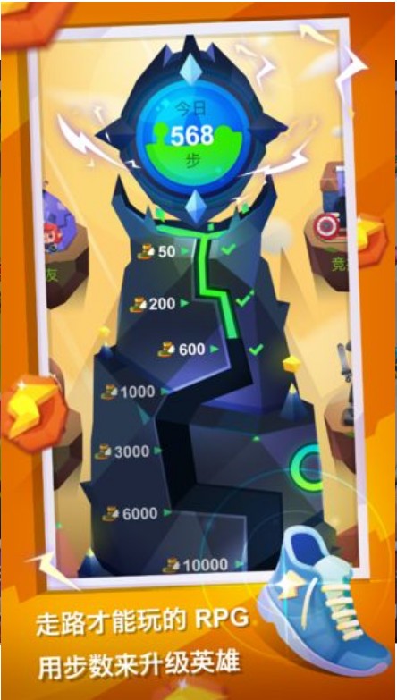 1、玩家在现实生活中需要不断的走路才能进行挑战的RPG作品,你要利用自己的步数在其中升级自己的英雄;