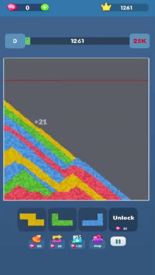 1、本作是一款融合沙流物理效果与经典方块玩法的创新消除游戏,通过颜色匹配与逻辑规划完成关卡挑战。
