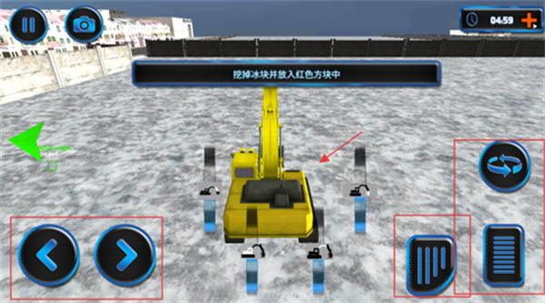 1. 玩家通过屏幕上的虚拟双摇杆和一系列功能按键,分别控制挖掘机的底盘移动、上车平台旋转以及大小臂和铲斗的复合动作。