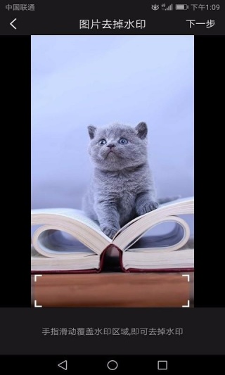 2、在图片去水印页面中选择需要去除水印的部分,点击下一步;