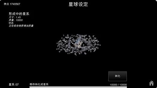 2、通过漫游宇宙、接近其他天体来获取神点和质量,逐步强化星系结构,解锁更多星球形态。