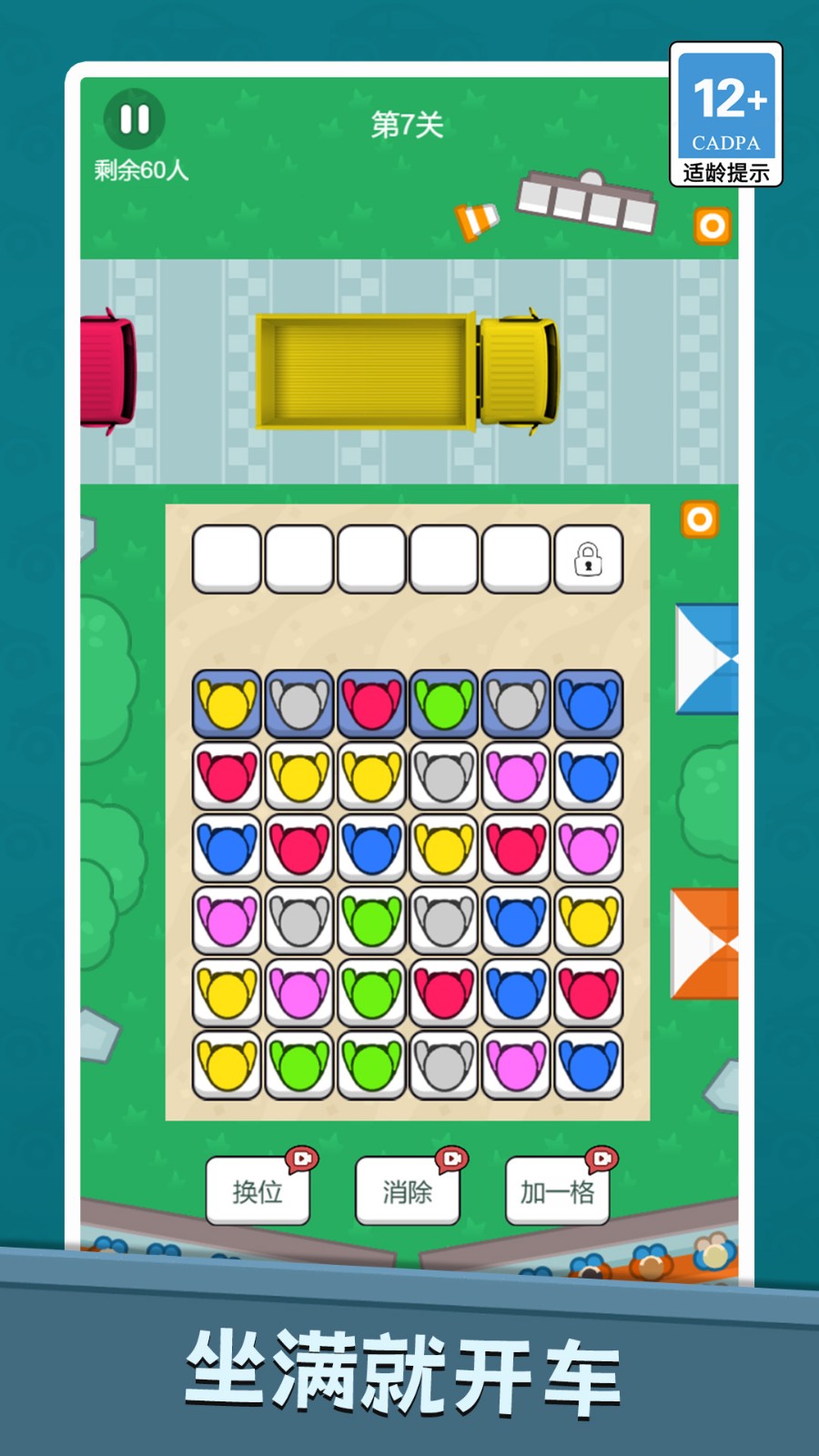 1、进入关卡后,先明确当前剩余人数与任务要求,通过点击拖拽操作调整角色或车辆位置,实现顺序优化,确保符合上车或离场规则。