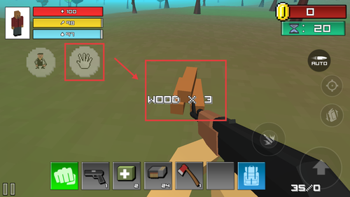 1、进入游戏后熟悉操作逻辑,对准地图物资点击手掌图标拾取,开局用斧头挥砍树木收集木材等基础资源。
