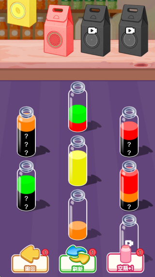 2、遇到卡关时利用刷新功能重置布局,换角度观察液体分布,尝试不同的倾倒顺序,可能发现新的解题思路。