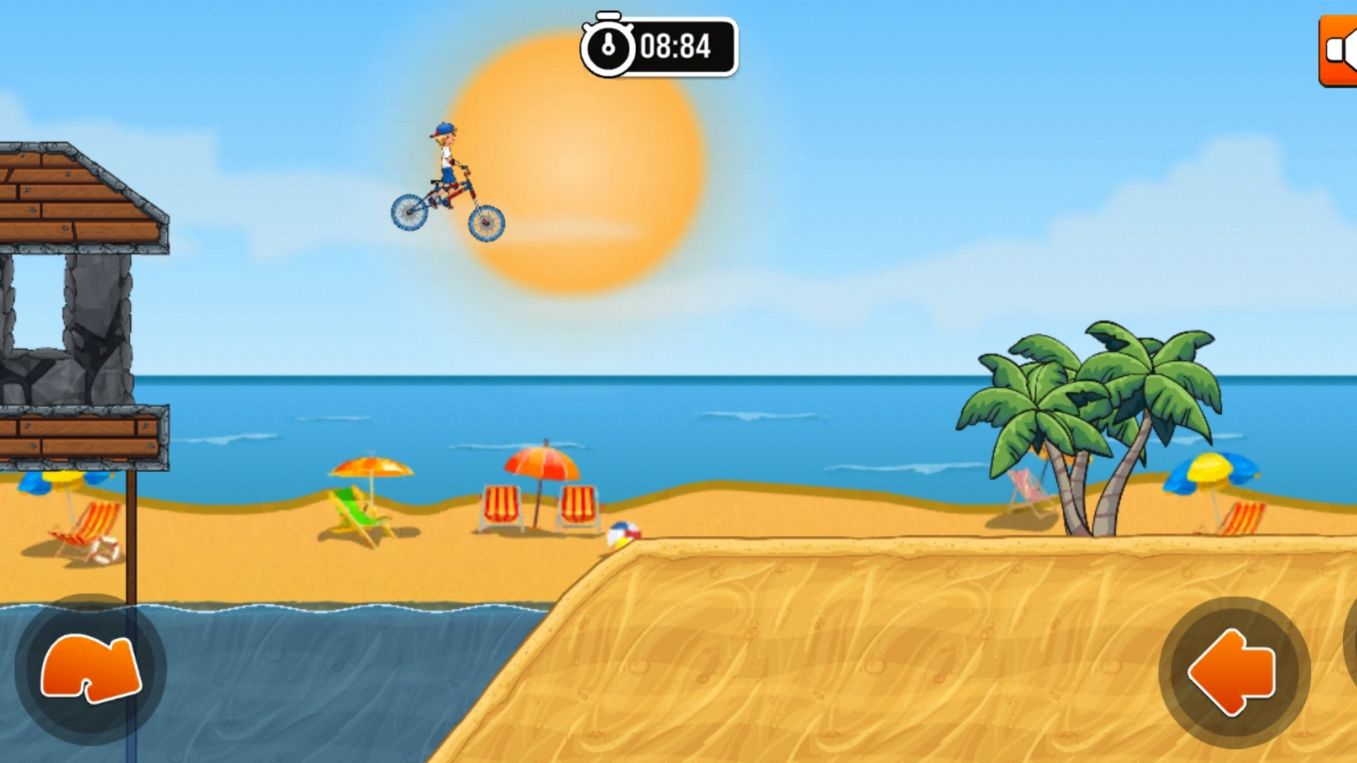 进入关卡之后,使用左右两端的按钮来控制摩托车的行动。同时玩家还需要注意画面上方的计时器。