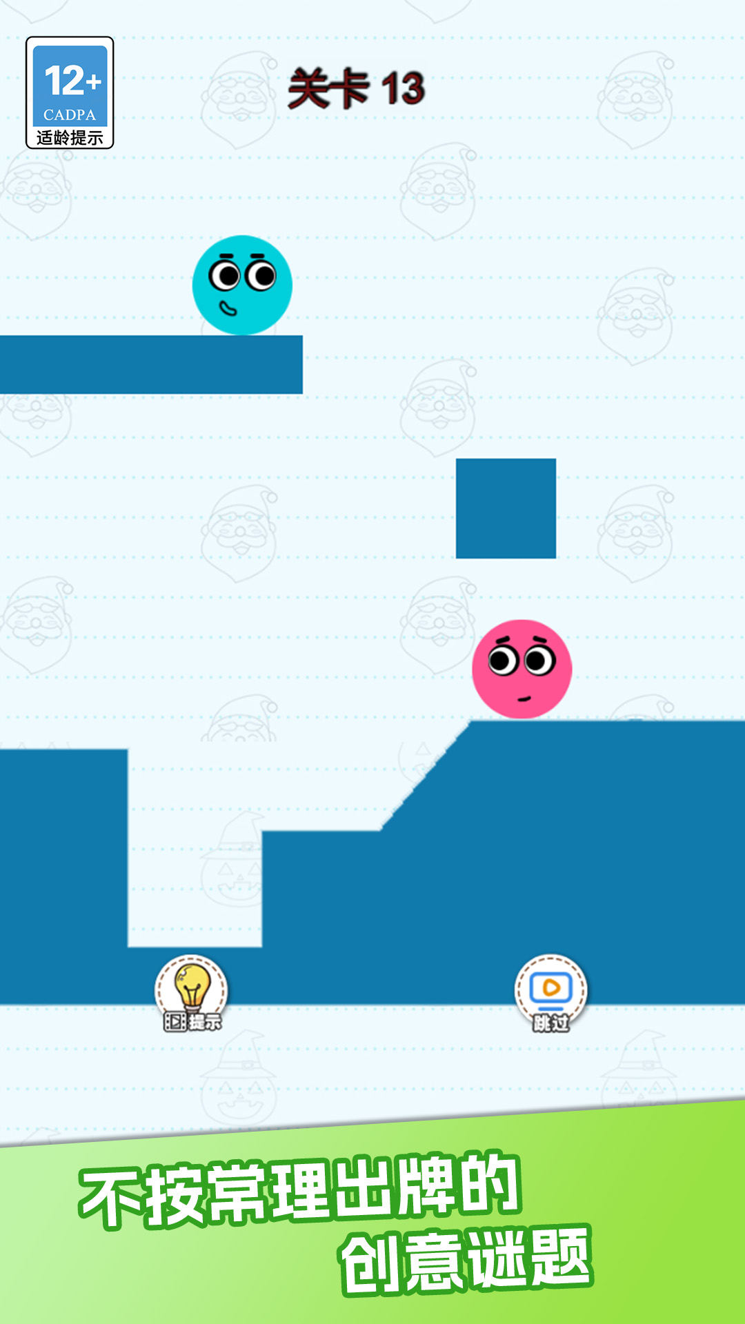 1.玩家通过滑动屏幕绘制线条,利用重力、反弹等物理规则,控制红蓝球运动轨迹。
